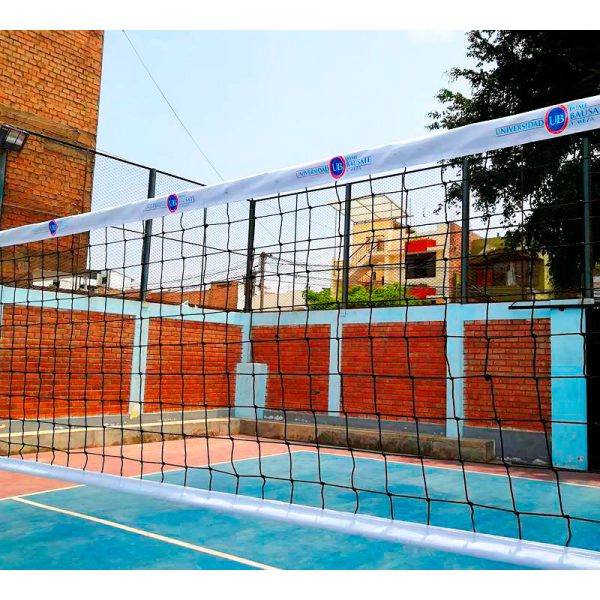 Desde amateur hasta profesional, cumple con las normas de la FIVB. Red negra alquitranada con cuadros de 10 x 10 cm. Banda Superior de 7 cm. Banda Inferior de 5 cm. Cableada con acero plastificado. Ancho de acuerdo a su campo.